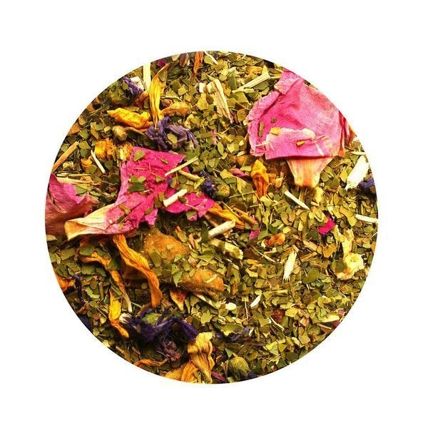 - Skład: yerba mate 93% , skórka cytryny, skórka pomarańczy, płatki słonecznika, ananas cięty, żeń-szeń syberyjski, malwa kwiat, piwonia kwiat, naturalne aromaty.