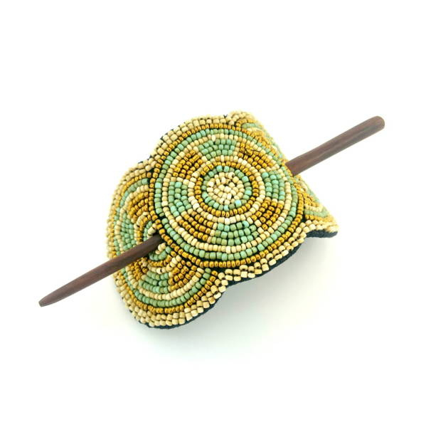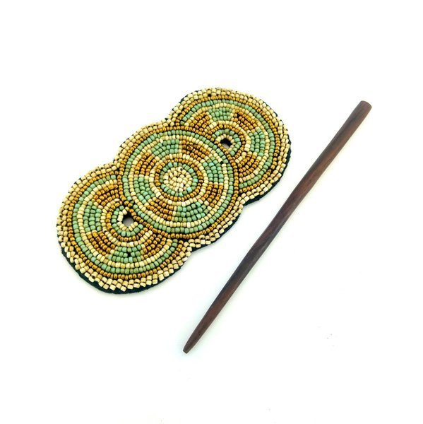 Piękna orientalna spinka do włosów z drewnianym patykiem. Wykonana z drobnych koralików. Oryginalna indonezyjska ozdoba do włosów.