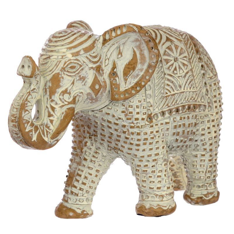 Tajski słoń w kolorze złoto - białym będzie wyszukanym dodatkiem i doskonałym uzupełnieniem etnicznego stylu w domu.