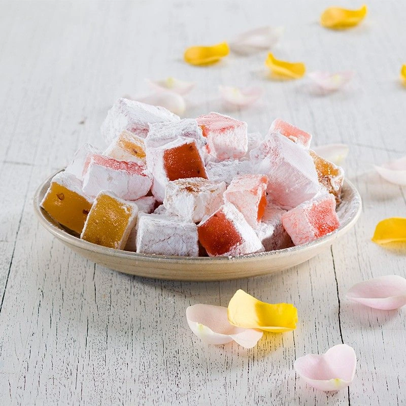 Rachatłukum mieszanka smaków o smaku róży, cytryny, pomarańczy, mięty. Rozkosz dla podniebienia znany także jako Lokum Turkish Delight. Miękkie, słodkie kosteczki o konsystencji galaretki.
