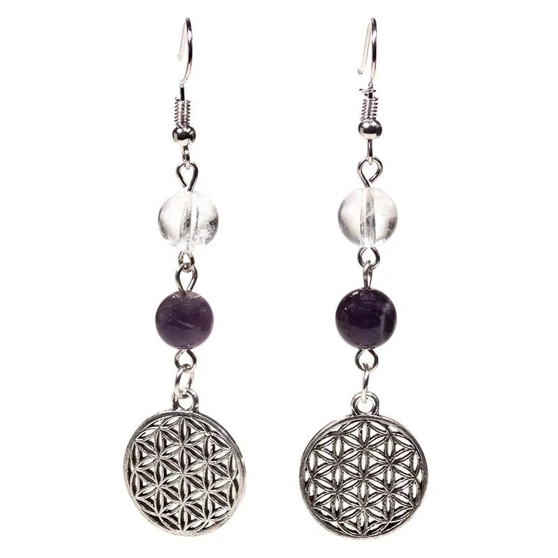 Kolczyki Kwiat Życia ametyst kryształ górski orientalne