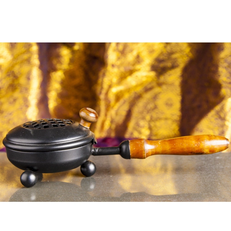 Solidna, żelazna kadzielniczka Mahani z drewnianą rączką. W środku umieszcza się węgielek, podpala i zasypuje kadzidłem. Ułatwia stworzenie odpowiedniej atmosfery do medytacji oraz oczyszczenie aury.