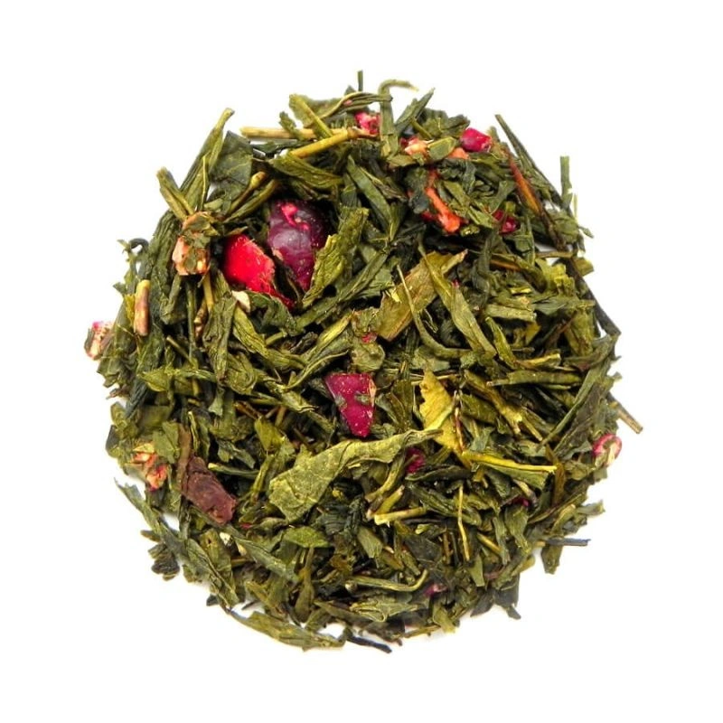 Sencha truskawkowa Aromatyczna Rapsodia to rodzaj zielonej herbaty przygotowywanej bez mielenia liści z dodatkiem truskawek.