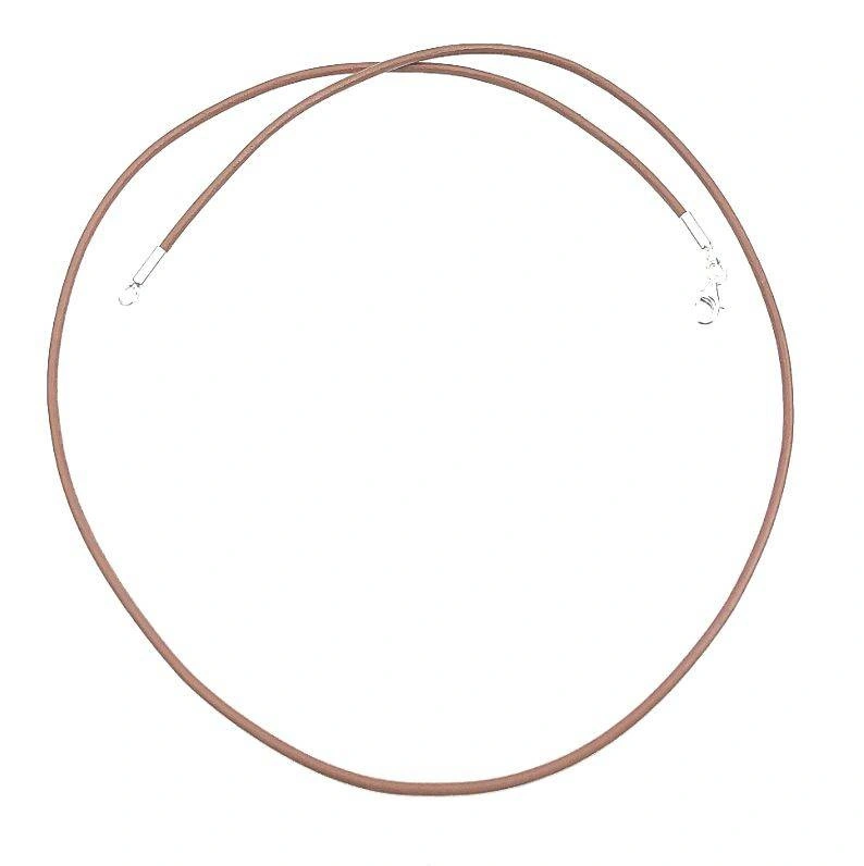 Rzemień ze skóry w kolorze brązowym, okrągły o grubości 1 mm. Dzięki niewielkiej średnicy zapięcie bez problemu przechodzi przez większość wisiorków.