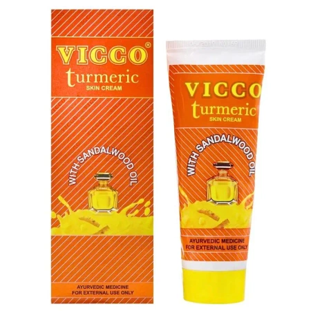 - Vicco Turmeric to krem do twarzy z olejkiem z drzewa sandałowego. Działa nawilżająco oraz delikatnie natłuszcza skórę.