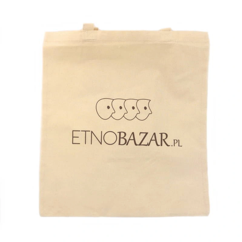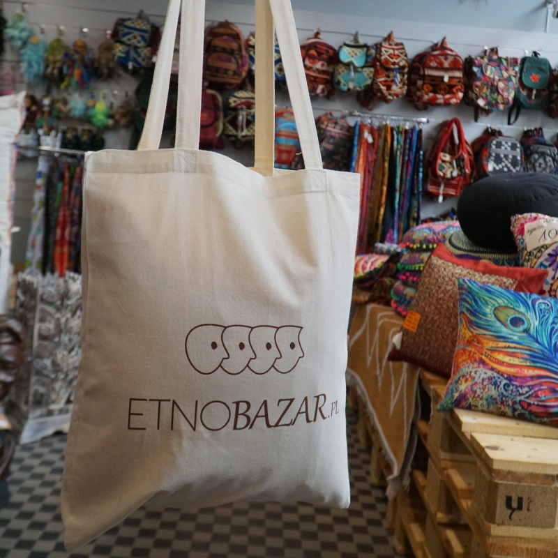 - Prosta i elegancka płócienna torba na zakupy z logiem Etnobazaru.