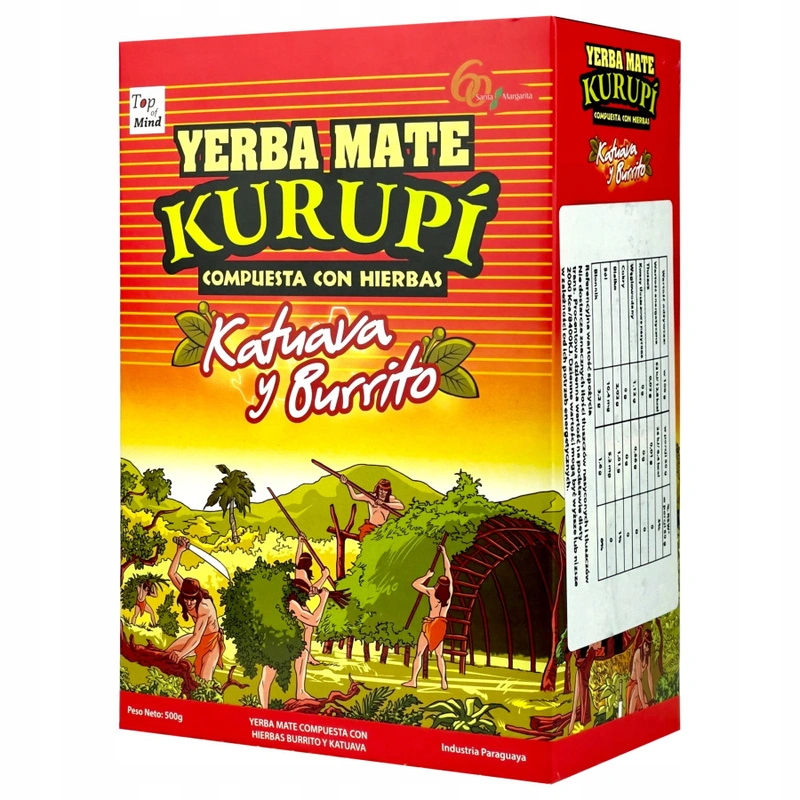 - Skład: liście yerba mate (Ilex paraguariensis) , cięta kora katuavy (Psidium cinereum), buritto (Aloysia polystachya)