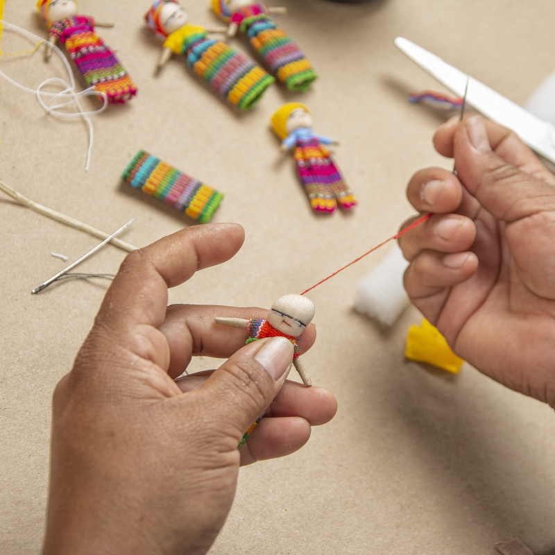 Po angielsku nazywane worry dolls, po polsku Laleczki na smuteczki. To ręcznie stworzone przez uzdolnione mieszkanki Gwatemali, małe kukiełki w kolorowych gwatemalskich strojach. Mają wysokość ok 5-6 cm. W tym wypadku laleczka jest w zestawie z kolorowym woreczkiem wykonanym z gwatemalskiej tkaniny.