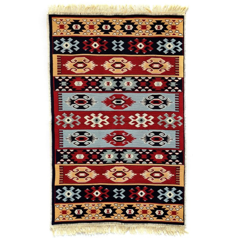 - Kilim turecki dywan, tkanina dekoracyjna, dwustronna o ciekawych geometrycznych wzorach i żywych kolorach.