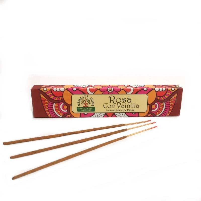 Kadzidełka Róża i wanilia Namaste joga medytacja Indie relaks odprężenie 20 szt