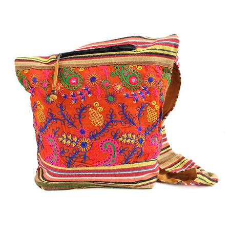 - Orientalna miejska torebka-worek z Indii z wyszywanym motywem kwiatowym.