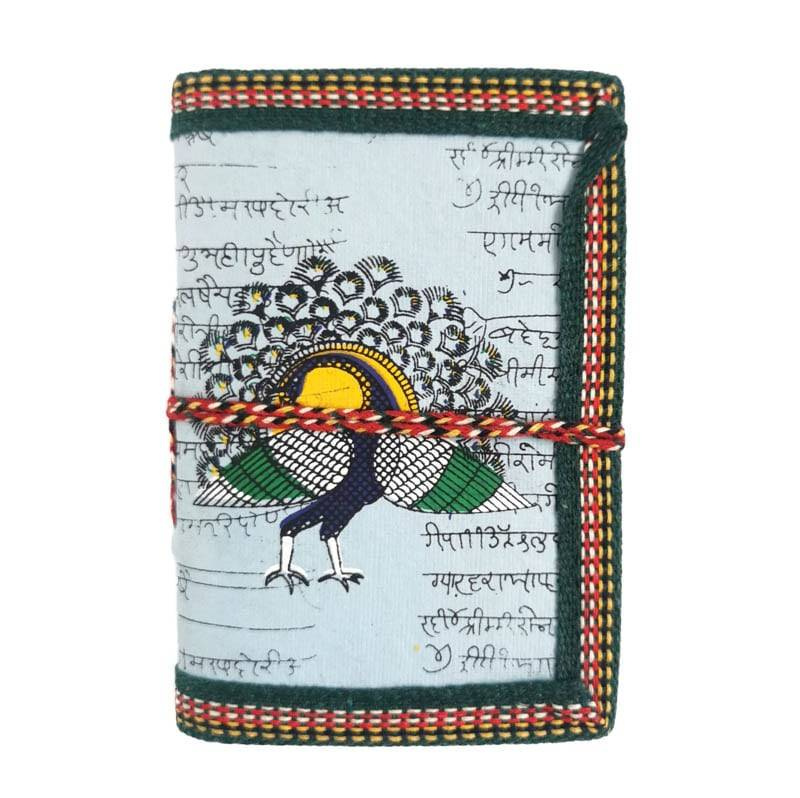 Malowana oprawa z motywem pawia oraz naturalny papier czerpany. Papier jest mocny i wspaniale się na nim pisze. Indyjskie rękodzieło! Dziennik wiązany na sznurek, posiada wzmocnione, obszywane rogi materiałem.