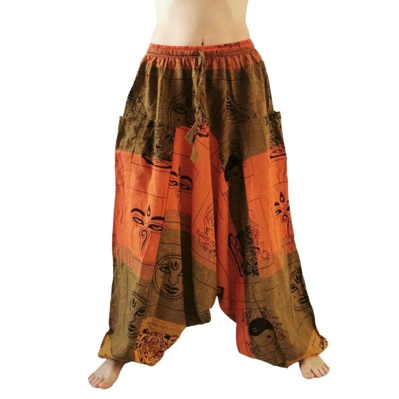 - Wygodne, przewiewne spodnie w uniwersalnym rozmiarze, z wzorami inspirowanymi Himalajami.
