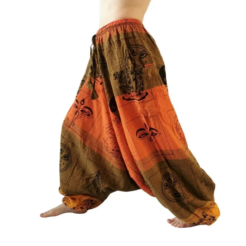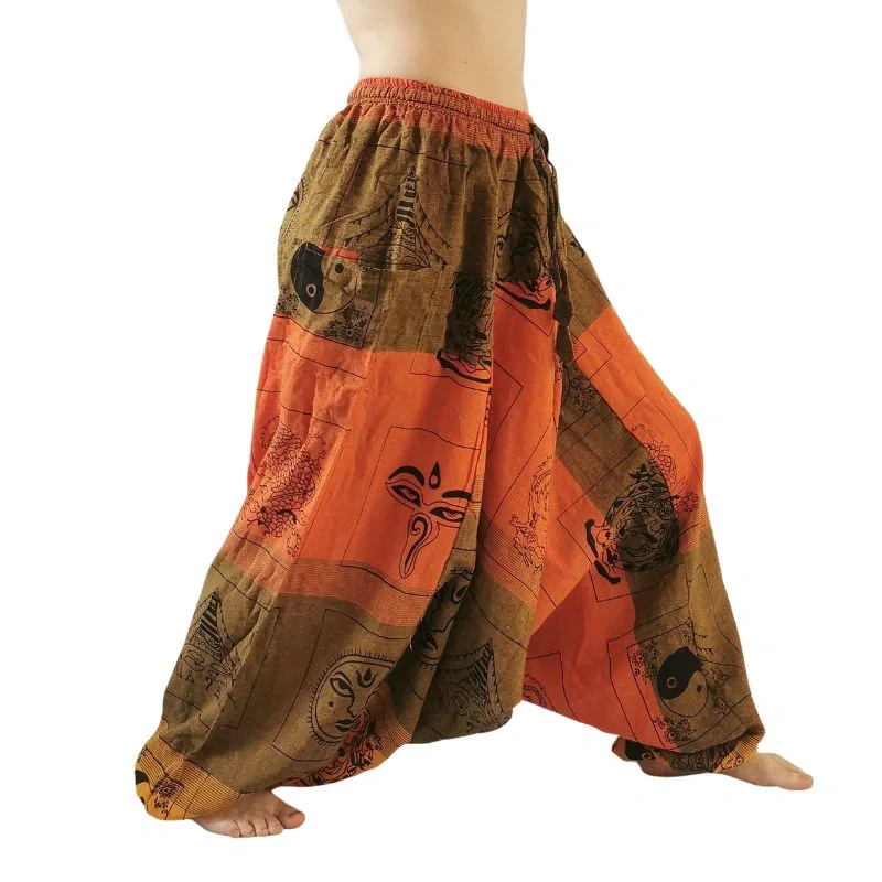 Szarawary alladynki bawełniane pomarańczowe spodnie joga Nepal