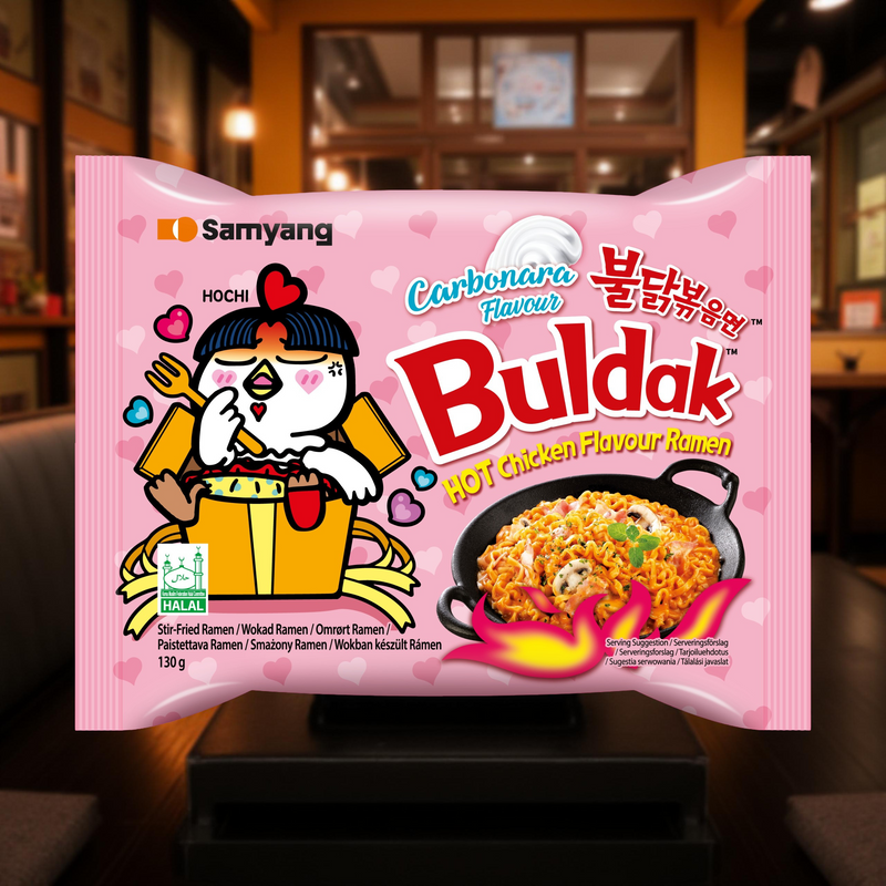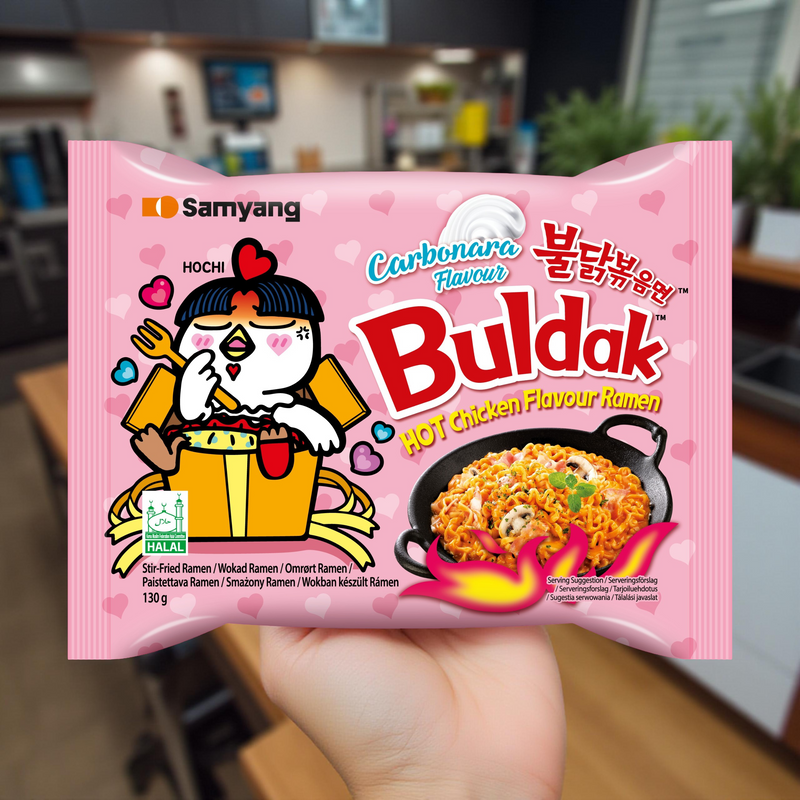 Ostra zupka koreańska Hot Chicken Flavour Ramen, pełna smaku, łączy w sobie aromat makaronu carbonara z zupą ramen.