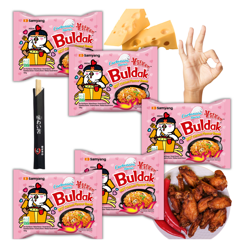 Buldak zupka ramen kurczak carbonara bardzo ostra Samyang x5 pałeczki GRATIS