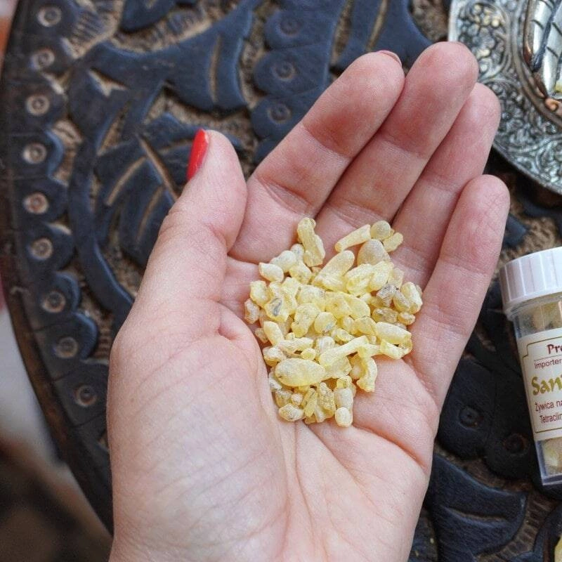 Pozyskiwane głównie z drzewa „Boswellia carteri”. Wyróżnia je naturalny, delikatnie cytrynowy, drzewny zapach. Żywica ta znana i ceniona jest od wieków. Używano jej na przestrzeni lat do medytacji, podczas ceremonii religijnych i w medycynie. Podarowanie drugiej osobie wyrażało szacunek i uznanie.