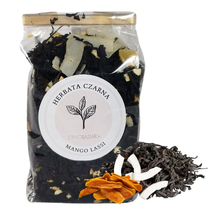 - Egzotyczna czarna, indyjska herbata "Mango Lassi", bogata w intensywny smak suszonego mango i kuszącą nutę płatków kokosa.