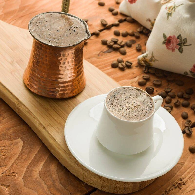 Kawę turecką charakteryzuje intensywny smak, a jej przygotowanie w tradycyjnym miedzianym tygielku dodaje całości wyjątkowego uroku. Dla miłośników kawy to nie tylko napój, to chwila relaksu i podróż w świat aromatów, którą możesz podarować w eleganckim zestawie. Jest to doskonały pomysł na prezent.