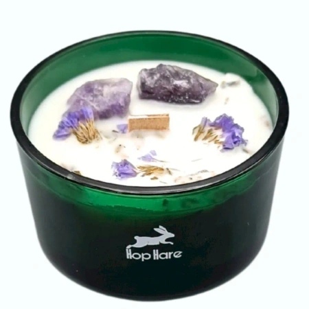 Wyjątkowa świeca sojowa została stworzona z myślą o tych, którzy szukają równowagi i relaksu. Delikatny blask płomienia współgra z kamieniem ametyst, tworząc atmosferę spokojnej kontemplacji. Ametyst, znany ze swojej zdolności wspierania medytacji i równoważenia energii, podkreśla mistycyzm chwil relaksu.