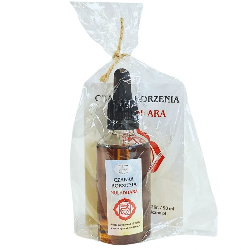 Olejek czakra Korzenia (Muladhara) wzmacnia poczucie bezpieczeństwa, daje uziemienie i stabilność.