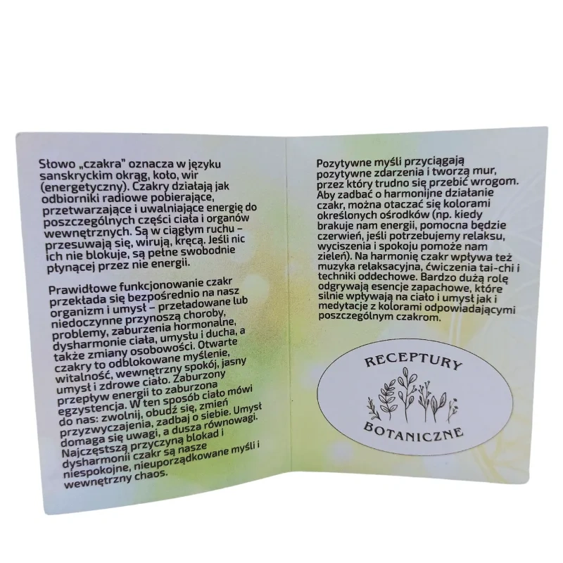 - Specjalnie dobrane kompozycje zapachowe olejków eterycznych pod poszczególne czakry.