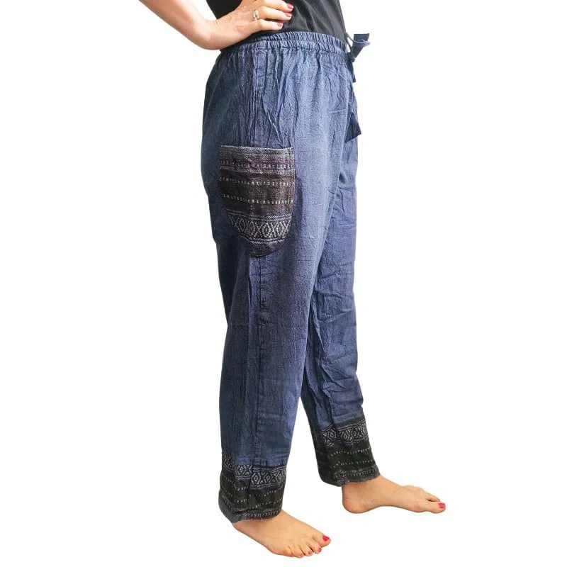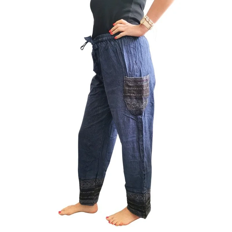 Spodnie bawełniane, luźne, do jogi, granatowe indyjskie