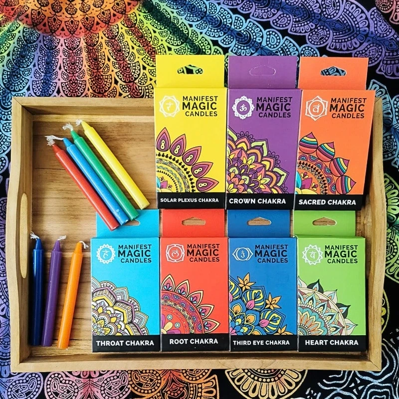 Żółty kolor świecy nawiązuje do czakry splotu słonecznego.