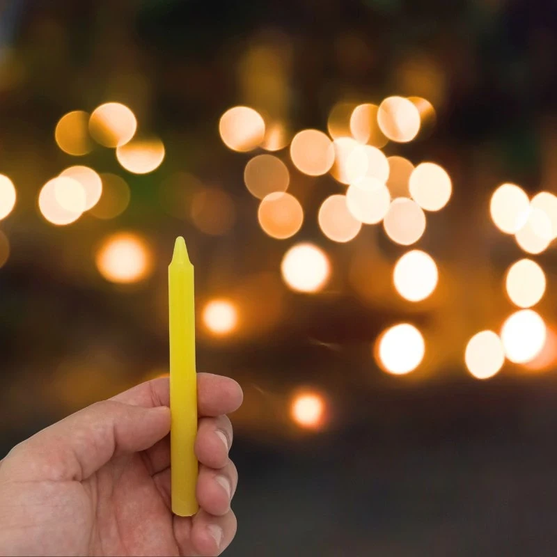 Opakowanie zawiera 12 świec w kolorze żółtym, bezzapachowych.