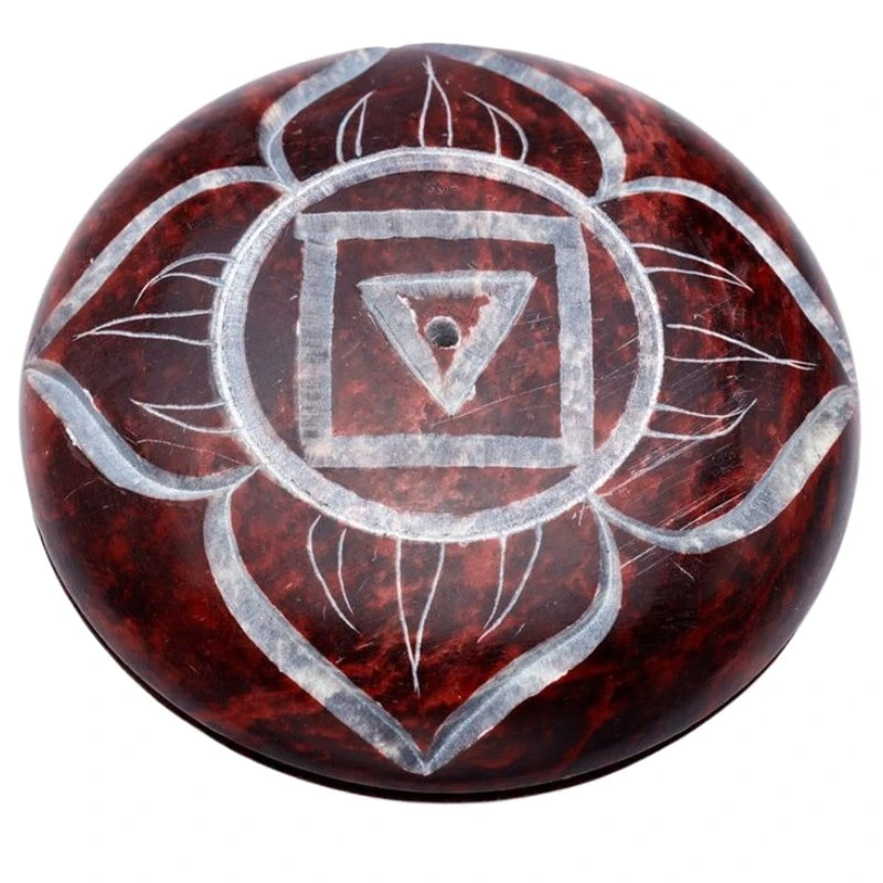 - Wyjątkowa podstawka pod kadzidła z trwałego kamienia - steatytu z symbolem pierwszej czakry.