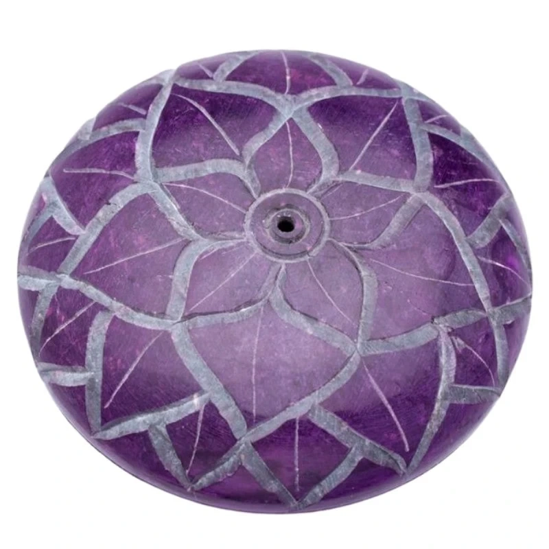 - Wyjątkowa podstawka pod kadzidła z trwałego kamienia - steatytu z symbolem siódmej czakry.