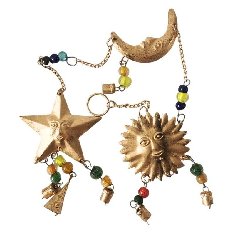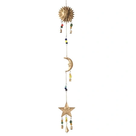 - Ozdobna zawieszka w kolorze złotym, z motywem słońca, księżyca i gwiazdy wykonana w Indiach.