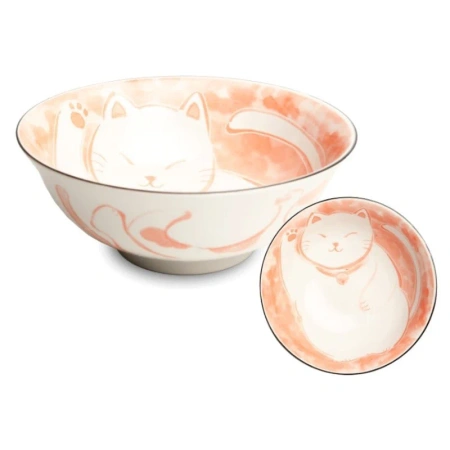Miska do ramen, udon, różowa z białym kotem Neko Nishiki 19 cm