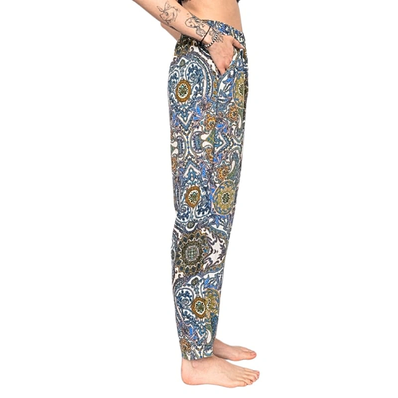 Letnie spodnie damskie, beżowe w orientalne wzory M/L