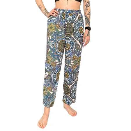 Spodnie damskie z wysokim stanem, orientalnym wzorem to idealny wybór na lato. Te zwiewne spodnie w piękne wzory, wykonane z lekkiego materiału.