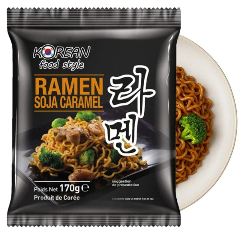 Korean Food Style Ramen Soja Caramel 170g to wyjątkowy wstępnie ugotowany makaron instant, który łączy orientalne aromaty z nutą słodyczy. To idealna propozycja dla miłośników kuchni koreańskiej oraz wszystkich, którzy chcą spróbować czegoś nowego i niebanalnego.
