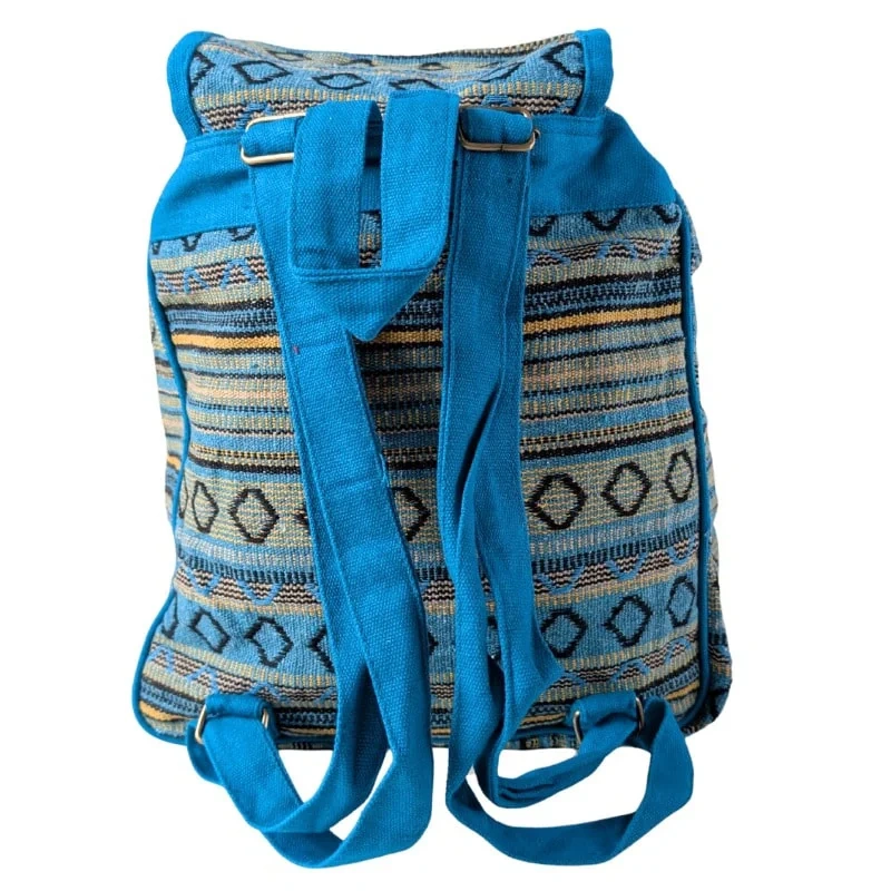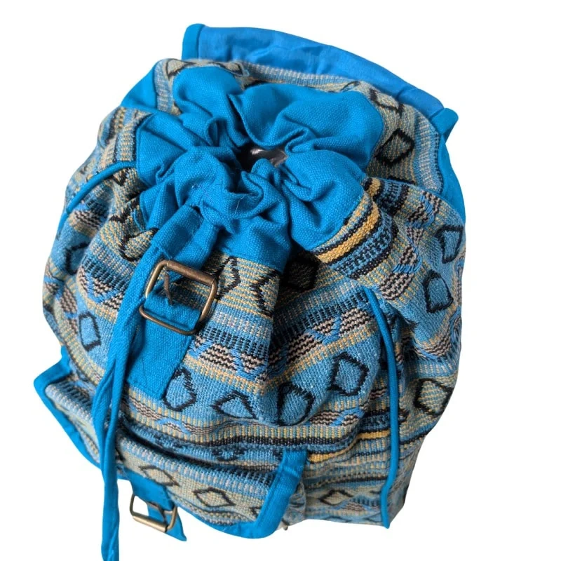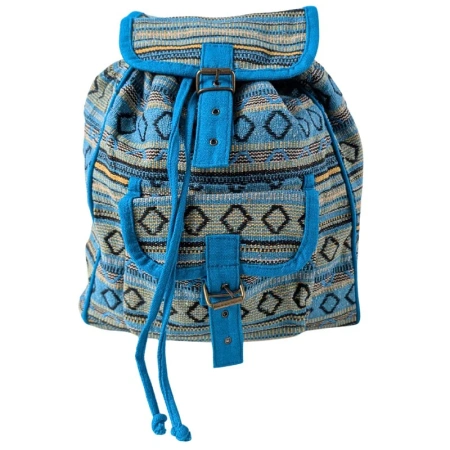 Plecak miejski damski i męski to idealne połączenie funkcjonalności i unikalnego designu, inspirowanego etnicznymi wzorami. Wykonany z bawełny gwarantuje trwałość i odporność na codzienne użytkowanie. Dominujące odcienie błękitu i turkusu, przeplatane beżem, tworzą harmonijną kompozycję geometrycznych motywów, nadając mu wyjątkowy charakter.