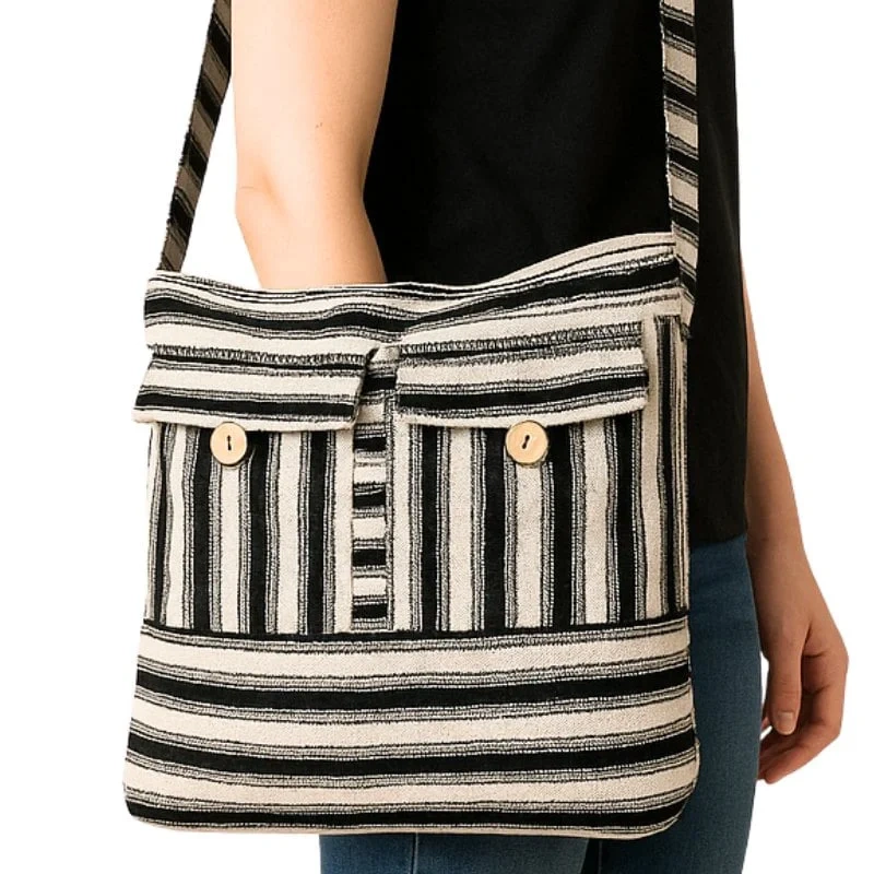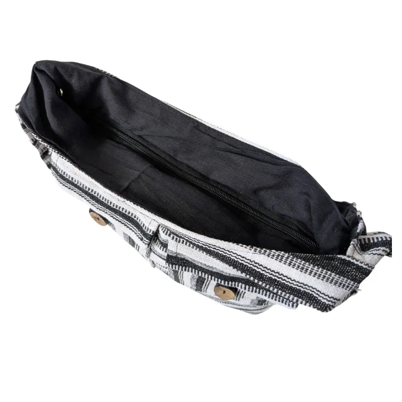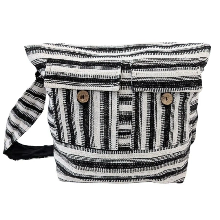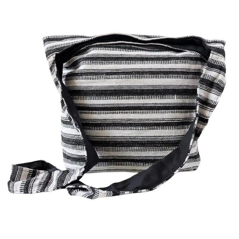 Orientalna, torebka - worek z Indii z wzorem w czarno-białe pasy.