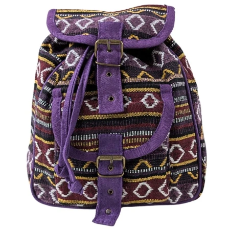 Mały plecak damsk fioletowy, w azteckie wzory, 100% bawełna