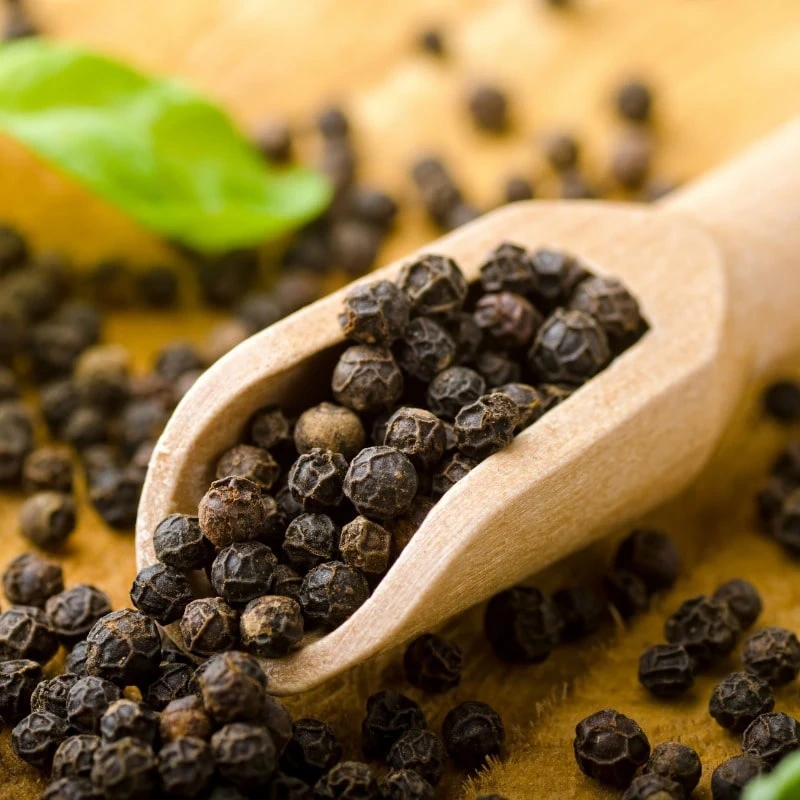 Pieprz czarny ziarnisty to obok soli najpopularniejsza przyprawa wykorzystywana w dzisiejszym świecie. Jest aromatyczna, pikantna, wzbogaca smak każdej potrawy. Wchodzi w skład wielu mieszanek. Doskonała do zup, sosów, potraw mięsnych oraz warzywnych. Dobrze komponuje się z rybami, serami i jajkami.