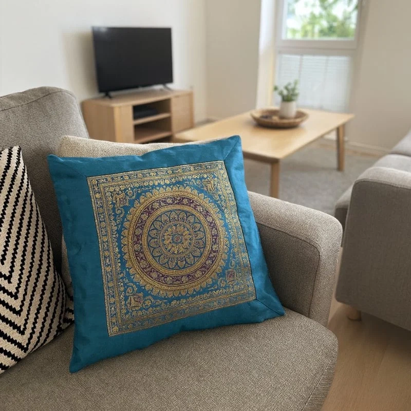 Poszewka na poduszkę z mandalą to doskonały sposób na szybką metamorfozę salonu, sypialni czy nawet przestrzeni do medytacji. Idealnie sprawdzi się na sofie, fotelu czy łóżku, dodając elegancji i egzotycznego charakteru.