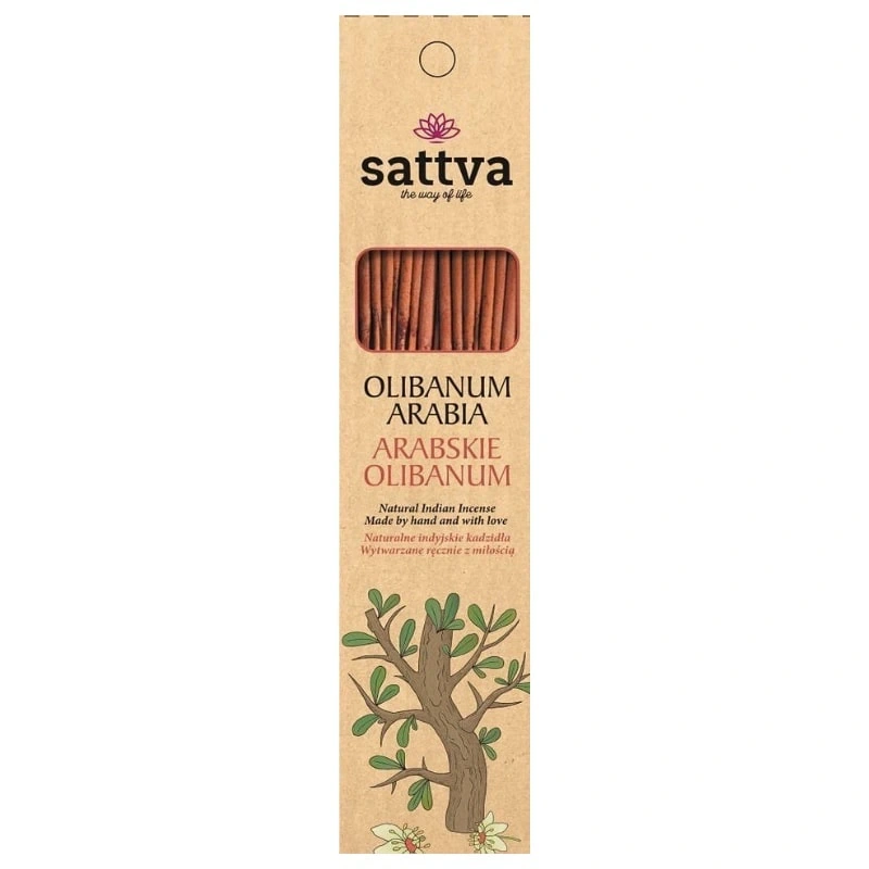 - Naturalne, ręcznie robione kadzidła olibanum arabskie marki Sattva to wyjątkowa mieszanka żywicy i ziół, idealna do codziennego wyciszenia, medytacji czy oczyszczania przestrzeni.