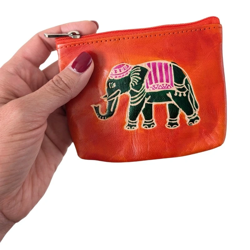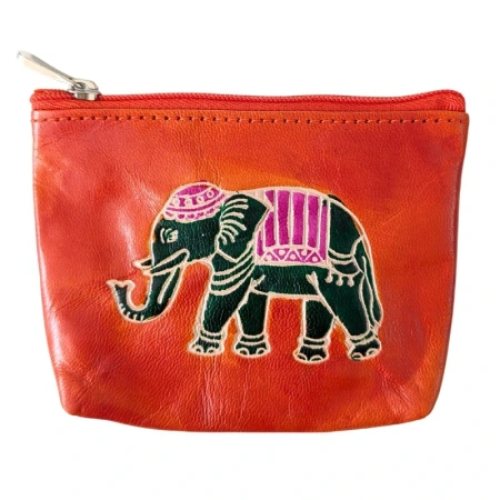 Portmonetka skórzana ze słoniem, pomarańczowa saszetka, Indie