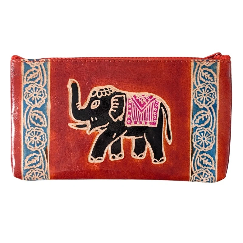 Skórzana saszetka z Indii z motywem słonia.