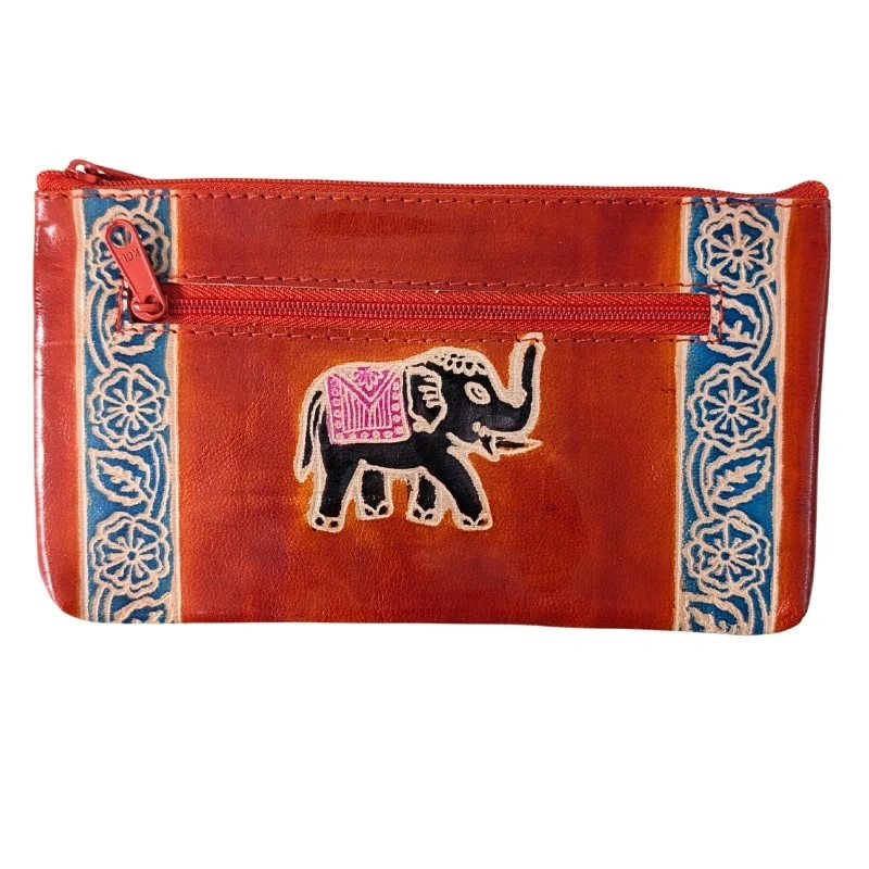 - Ręcznie robiona skórzana saszetka z Indii z kolorowym motywem słonia to praktyczny i oryginalny dodatek inspirowany kulturą Orientu.