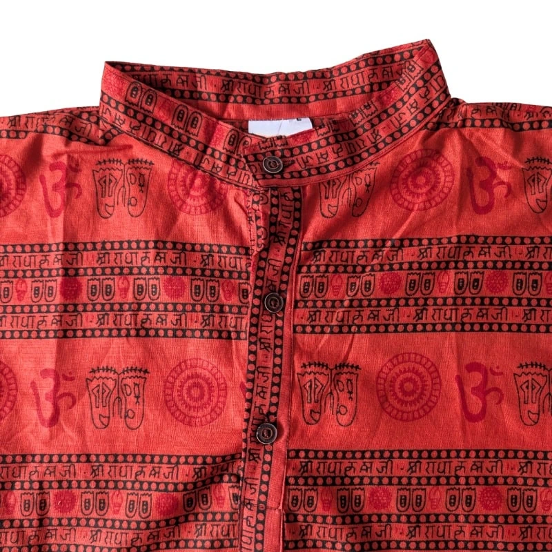 Wygodna, przewiewna i stylowa koszula bawełniana w indyjskim stylu to doskonały wybór zarówno dla kobiet, jak i mężczyzn. Wzór z symbolami „Om” (Ohm) i motywami etnicznymi nadaje jej wyjątkowego charakteru. Sprawdzi się zarówno na co dzień, jak i podczas praktyki jogi, medytacji czy letnich festiwali.