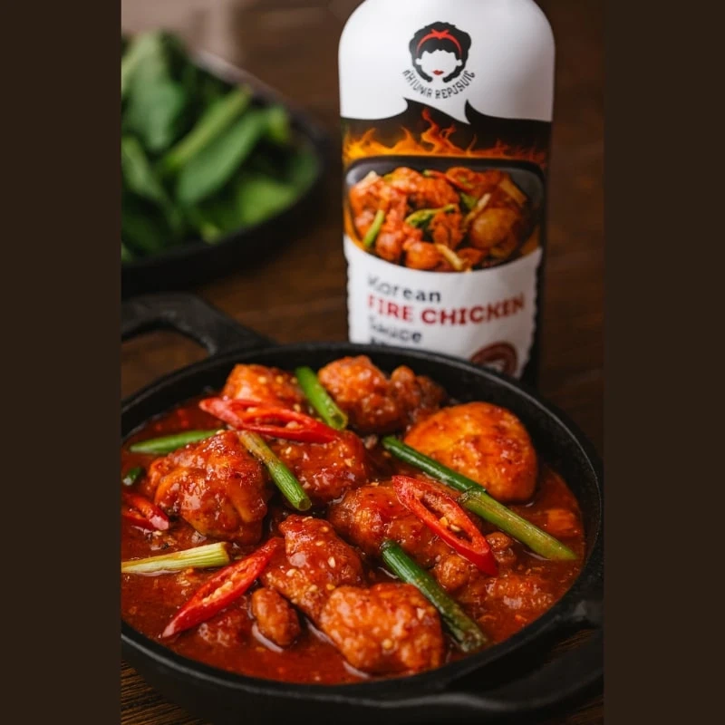 • eśli kochasz wyraziste, pikantne smaki, Korean Fire Chicken Sauce od Ajumma to strzał w dziesiątkę. Ten intensywny sos przenosi kultowe danie Buldak (ognistego kurczaka) prosto do Twojego domu. Gotowy sos pozwala w kilka minut przygotować autentyczne dani