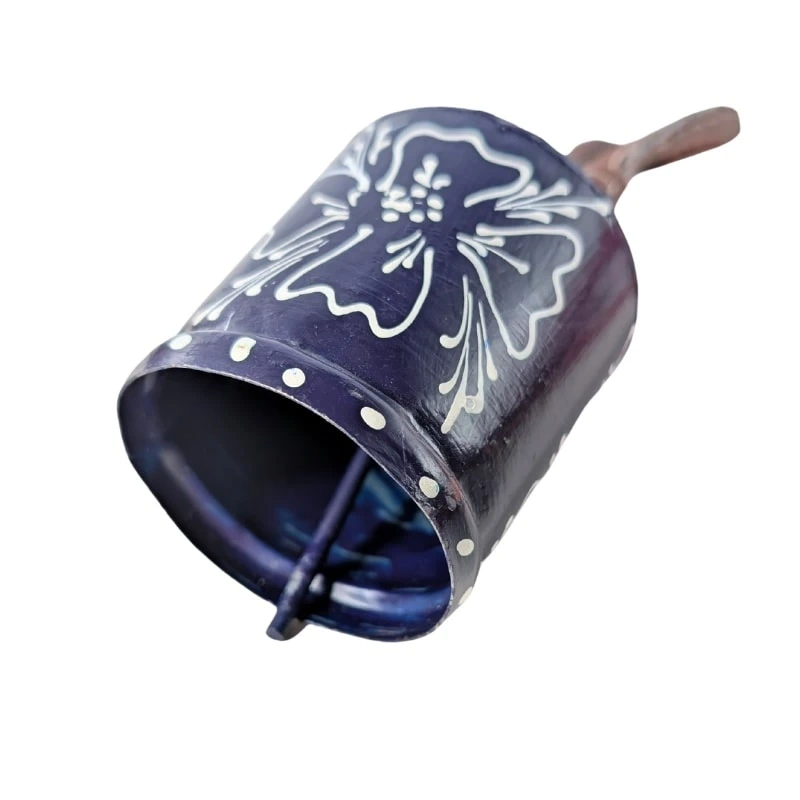 Ręcznie malowany metalowy dzwonek z motywem kwiatowym to nie tylko dekoracja – to autentyczny element inspirowany tradycyjnymi dzwonkami pasterskimi z Indii.