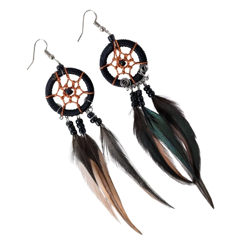 Kolczyki łapacze snów boho z piórami – wyjątkowa biżuteria pełna symboliki.