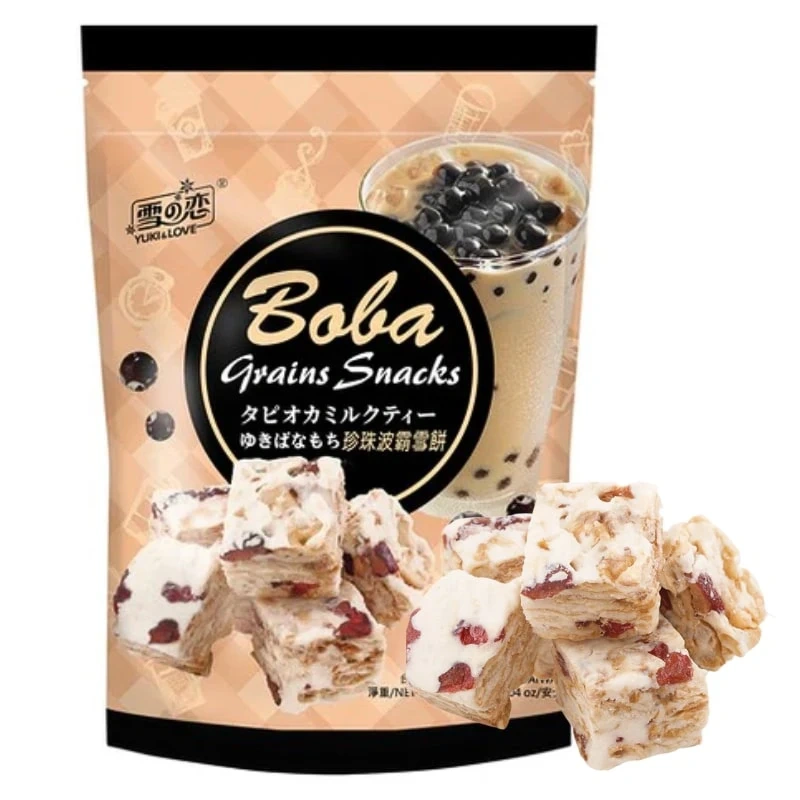 - Lubisz bubble tea i wyjątkowe azjatyckie smaki? Teraz możesz cieszyć się nimi także w formie chrupiącej przekąski! Boba Grains Snacks to pyszne połączenie mlecznego smaku, tapioki i chrupiących zbóż, które zaskoczy Cię swoją lekkością i słodkością.